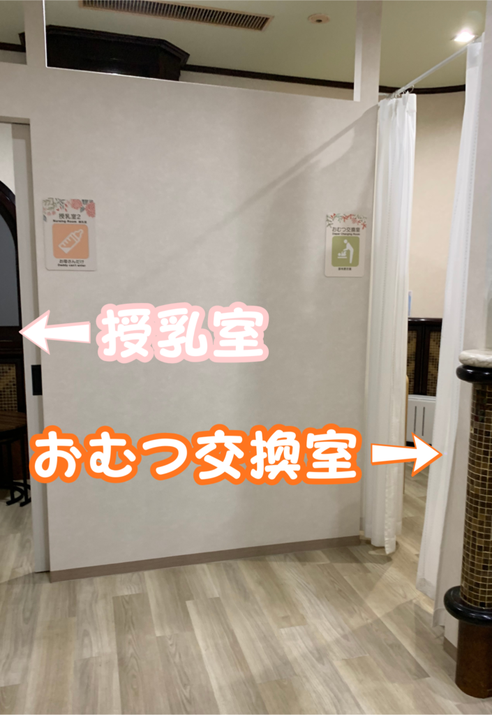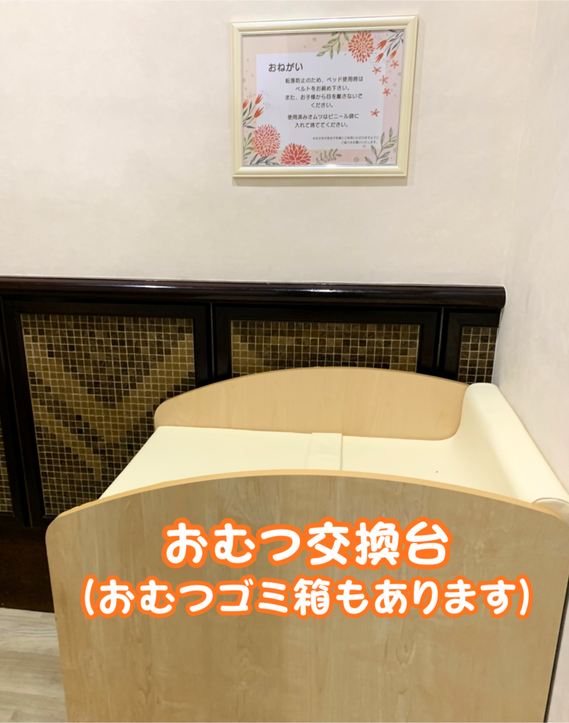 授乳室には、おむつ替え用のベッドもあるので、食事中におむつ交換したくなっても対応できるわね👶