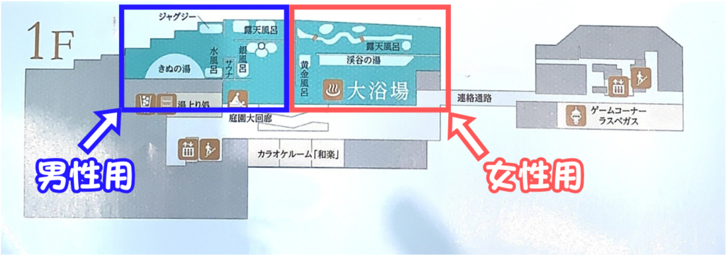 今回訪れた時は、きぬの湯が男性用、渓谷の湯が女性用でした。
