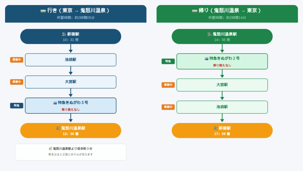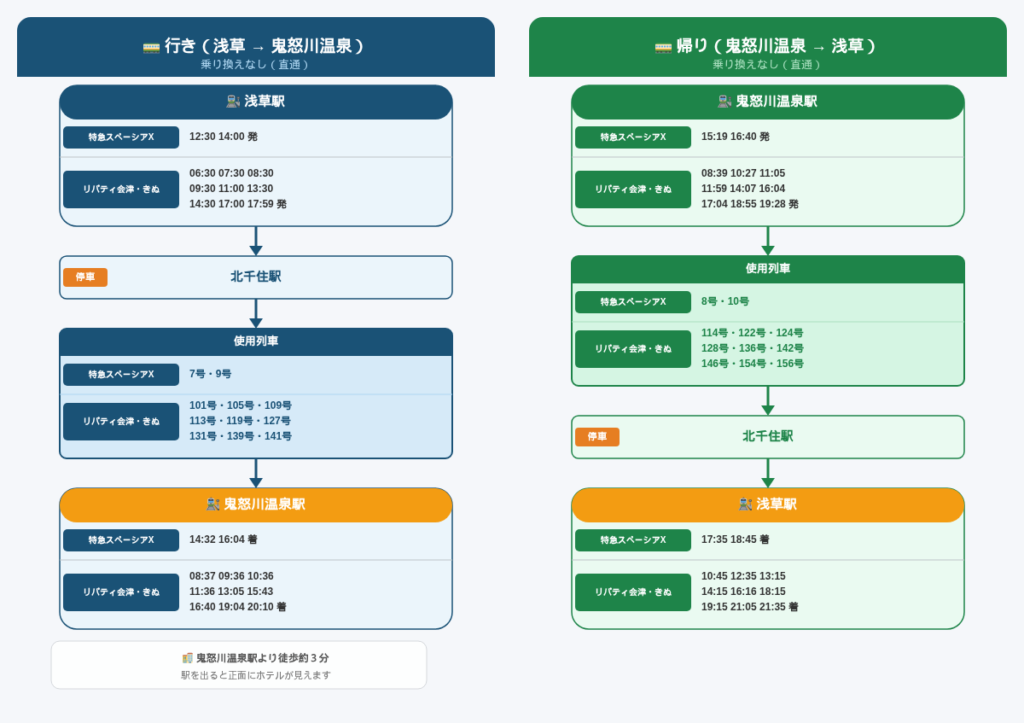 • 特急スペーシアXの記載している列車以外は、鬼怒川温泉駅に停車しないので、間違えないようにしてください。