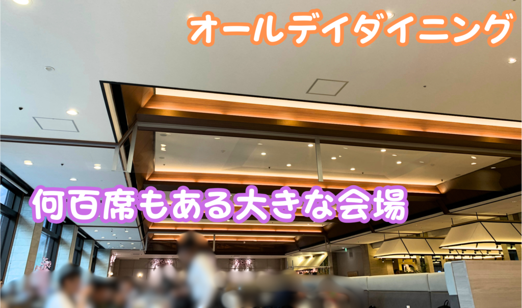 “日光きぬ川スパホテル三日月”の夕食バイキングは、オールデイダイニングという大きな会場になります。