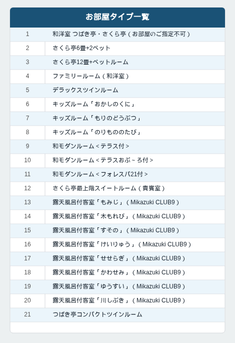 “日光きぬ川ホテル三日月”には、以下のように様々なお部屋タイプがあります。