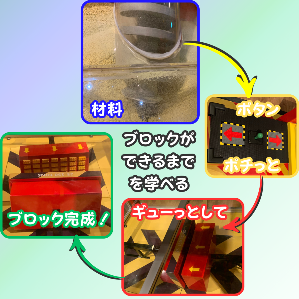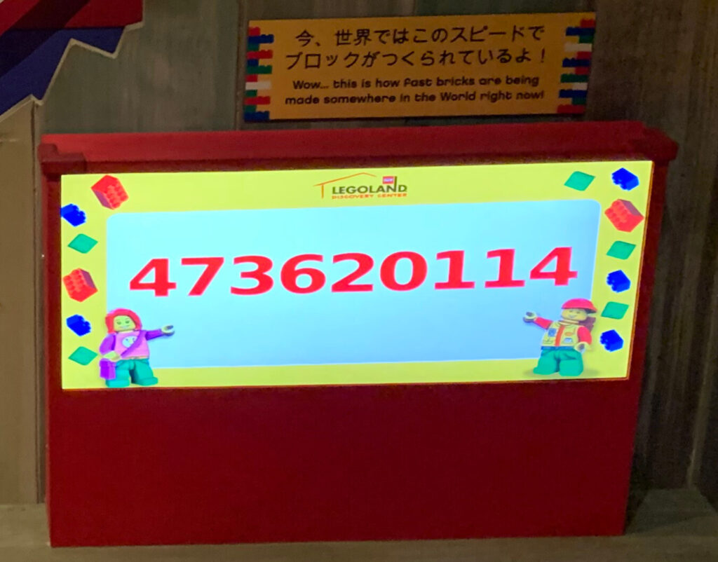 レゴ®ファクトリーでは、材料がレゴの形になるまでの作り方の紹介や、リアルタイムで製造されているレゴの個数が見れたりします。