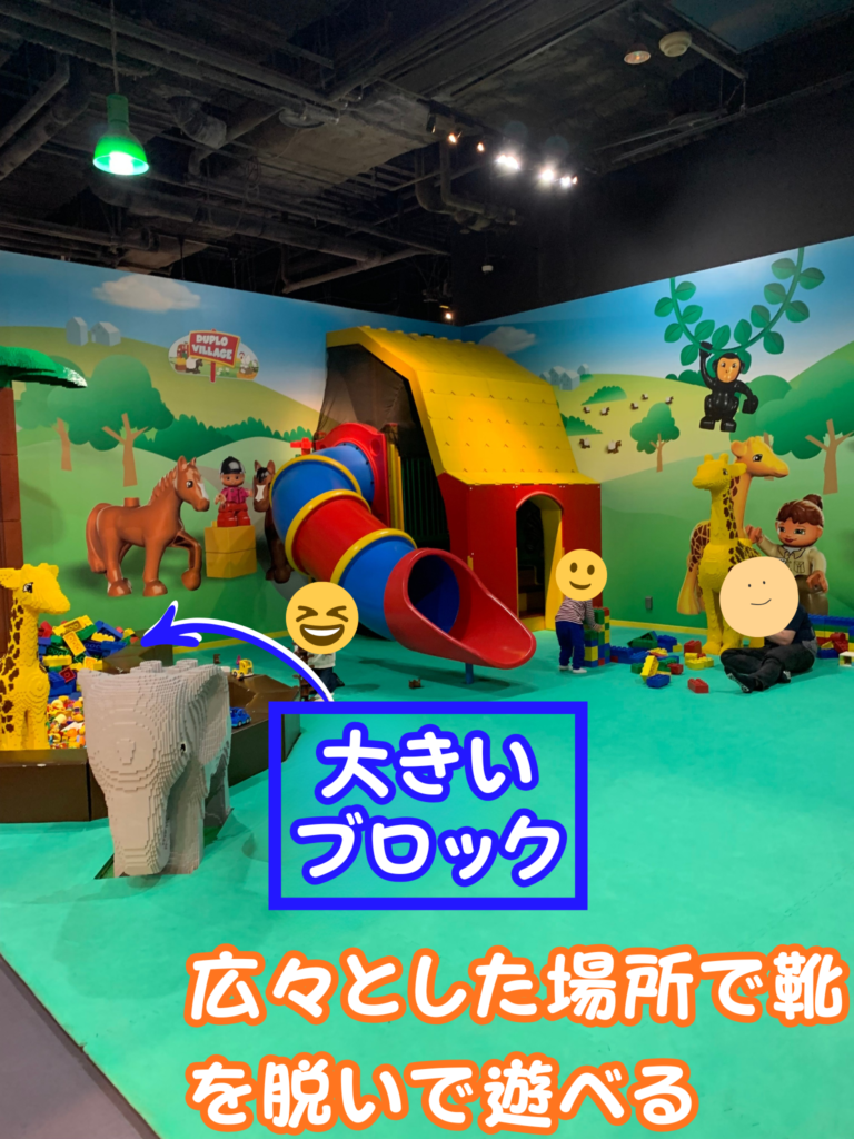 デュプロ®ビレッジは、未就学児など、まだ小さいレゴブロックを扱うのが難しい子が遊べる大きいレゴブロックがあるエリアです。