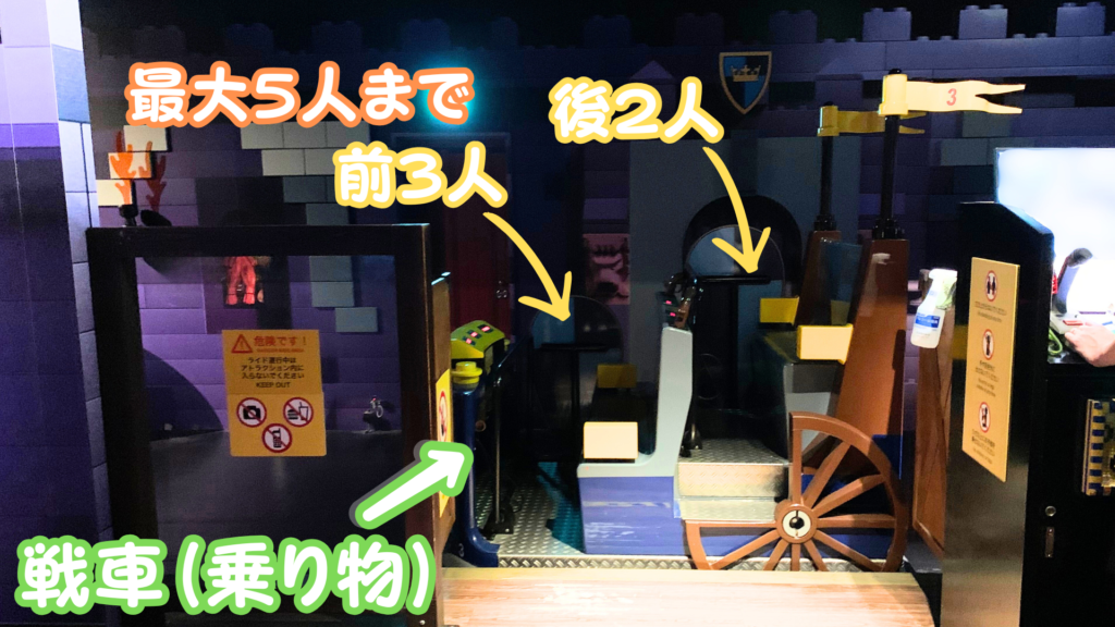 キングダムクエストは、戦車(乗り物)に乗り込んで、レーザー銃で敵を倒していくアトラクションです。