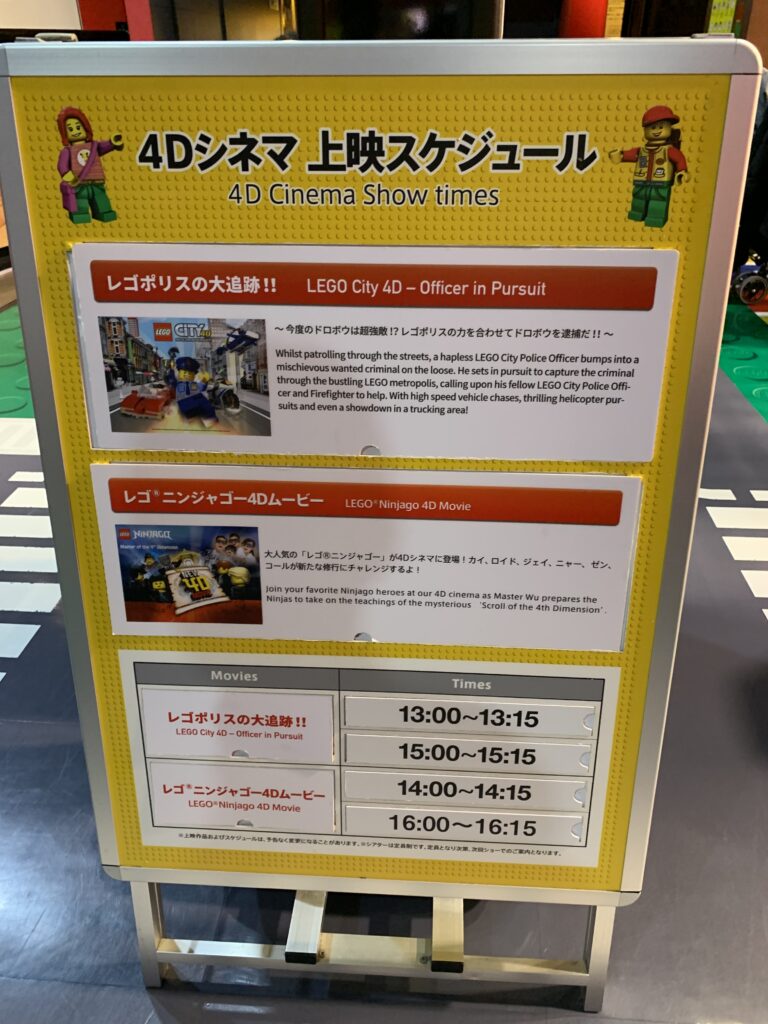 この日のスケジュールは👇️下の看板のとおり、レゴポリスとレゴニンジャの2種類でした。