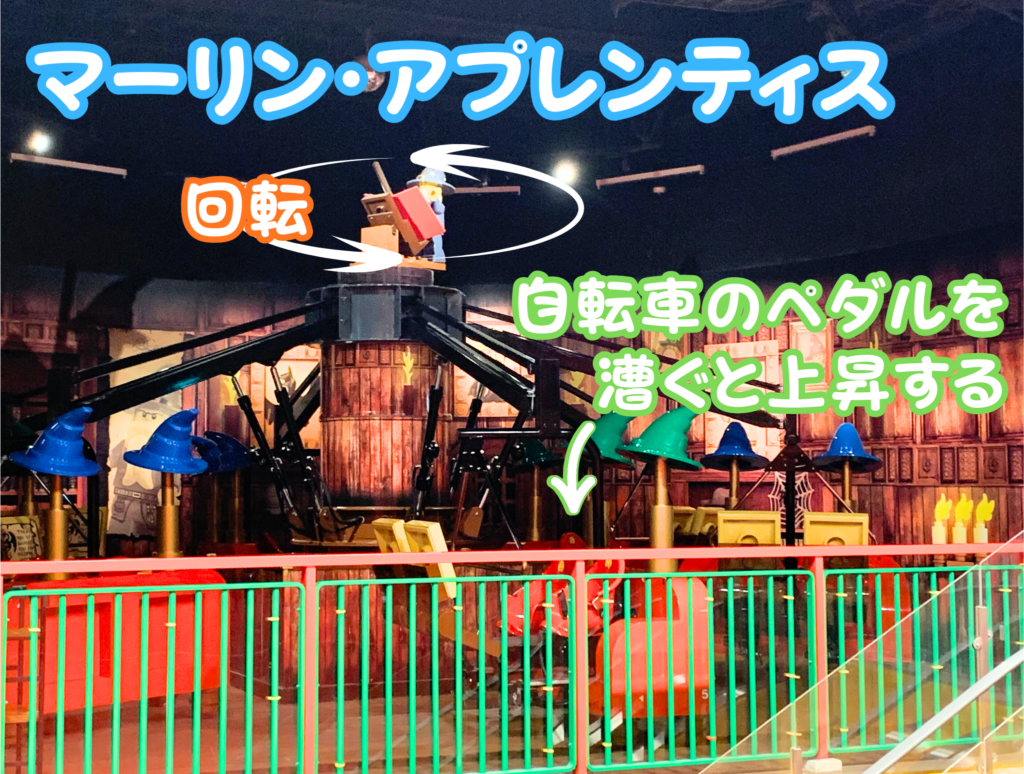 マーリン・アプレンティスは、回転する乗り物で、自転車のペダルを漕ぐと上昇するアトラクションです。